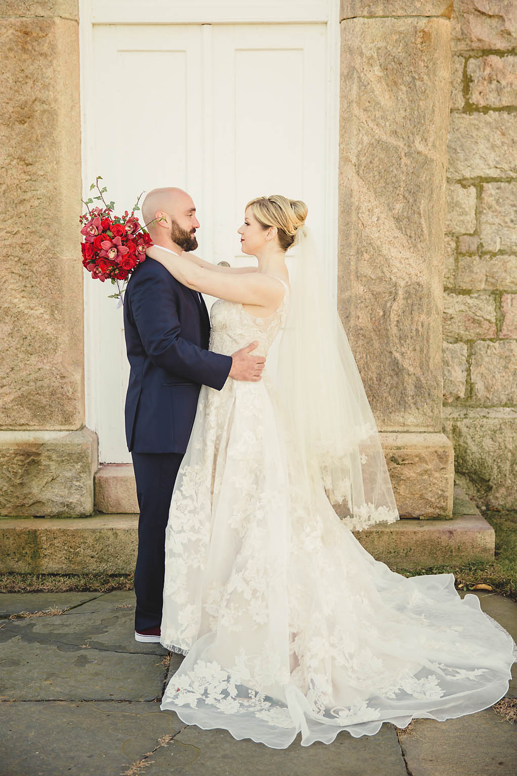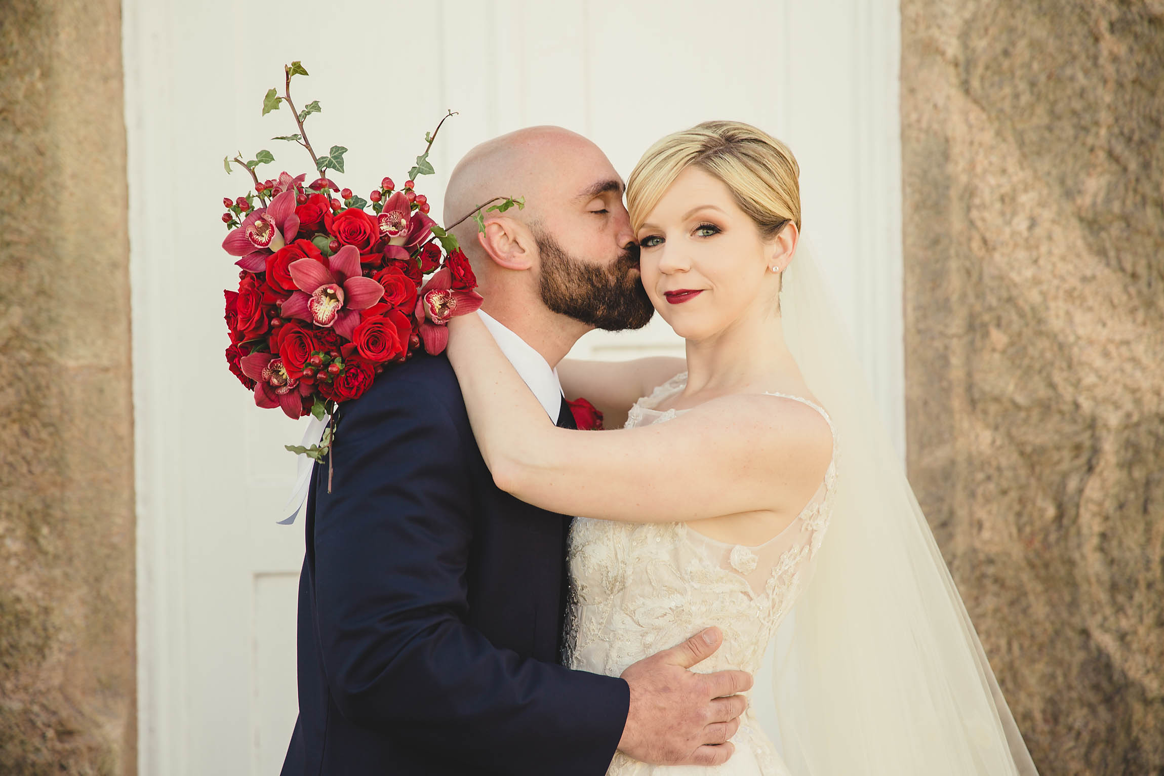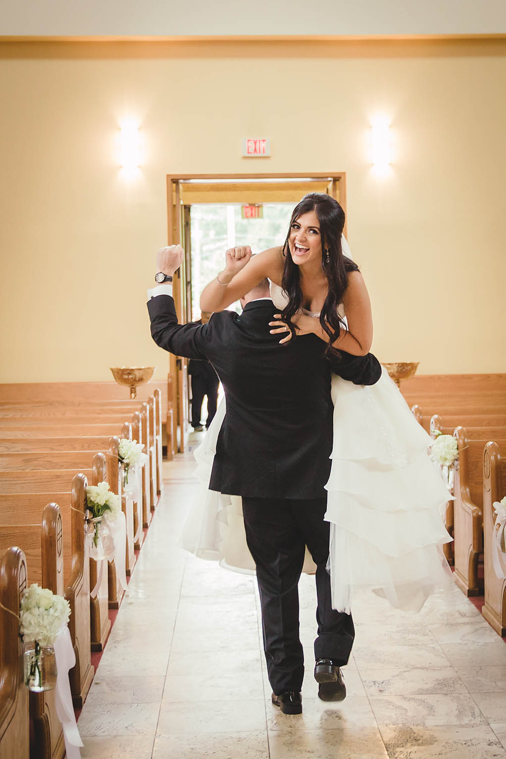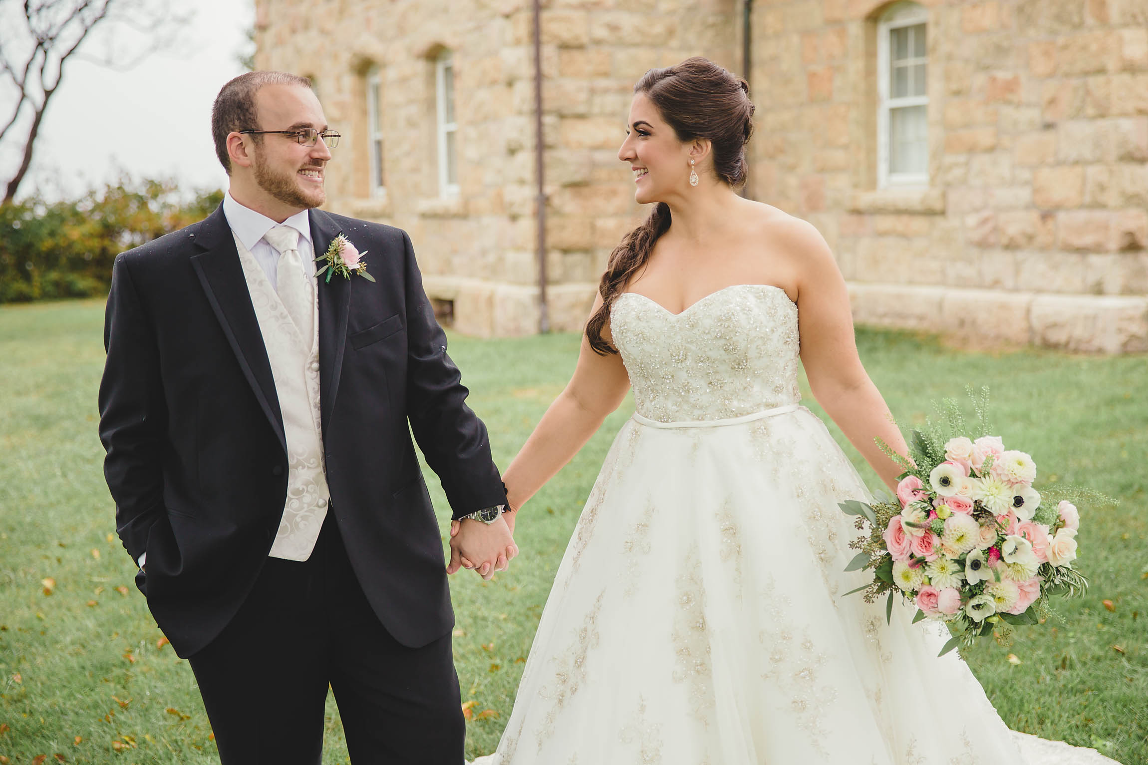 Fast forward to the wedding day. Kira looked absolutely stunning in her Oleg Cassini wedding dress, what can I say, it had pockets!! Kira said it was for “pocket candy” which is exactly what I would have used them for too. Even her shoes were perfect, a simple blue suede ballerina style slipper. Decker’s Nursery, Florist and Tree Preservation (where Mike works) made the bouquets and boutonnieres and they were exquisite.