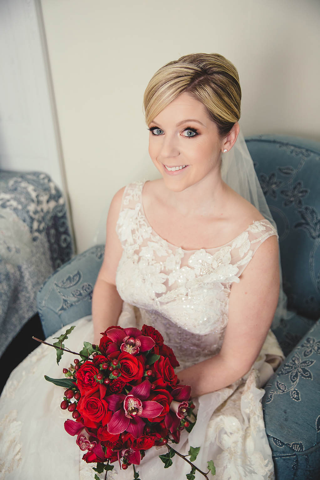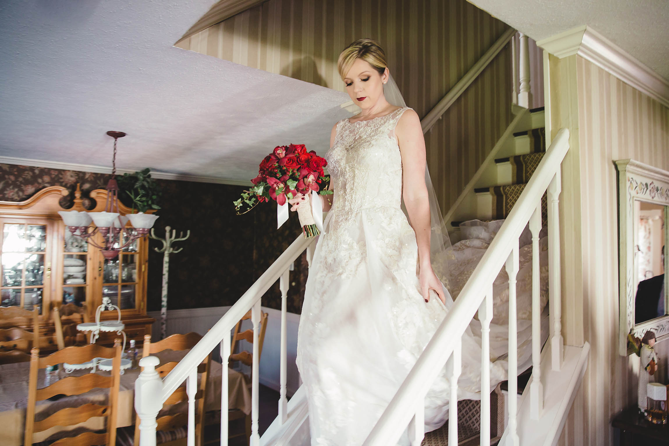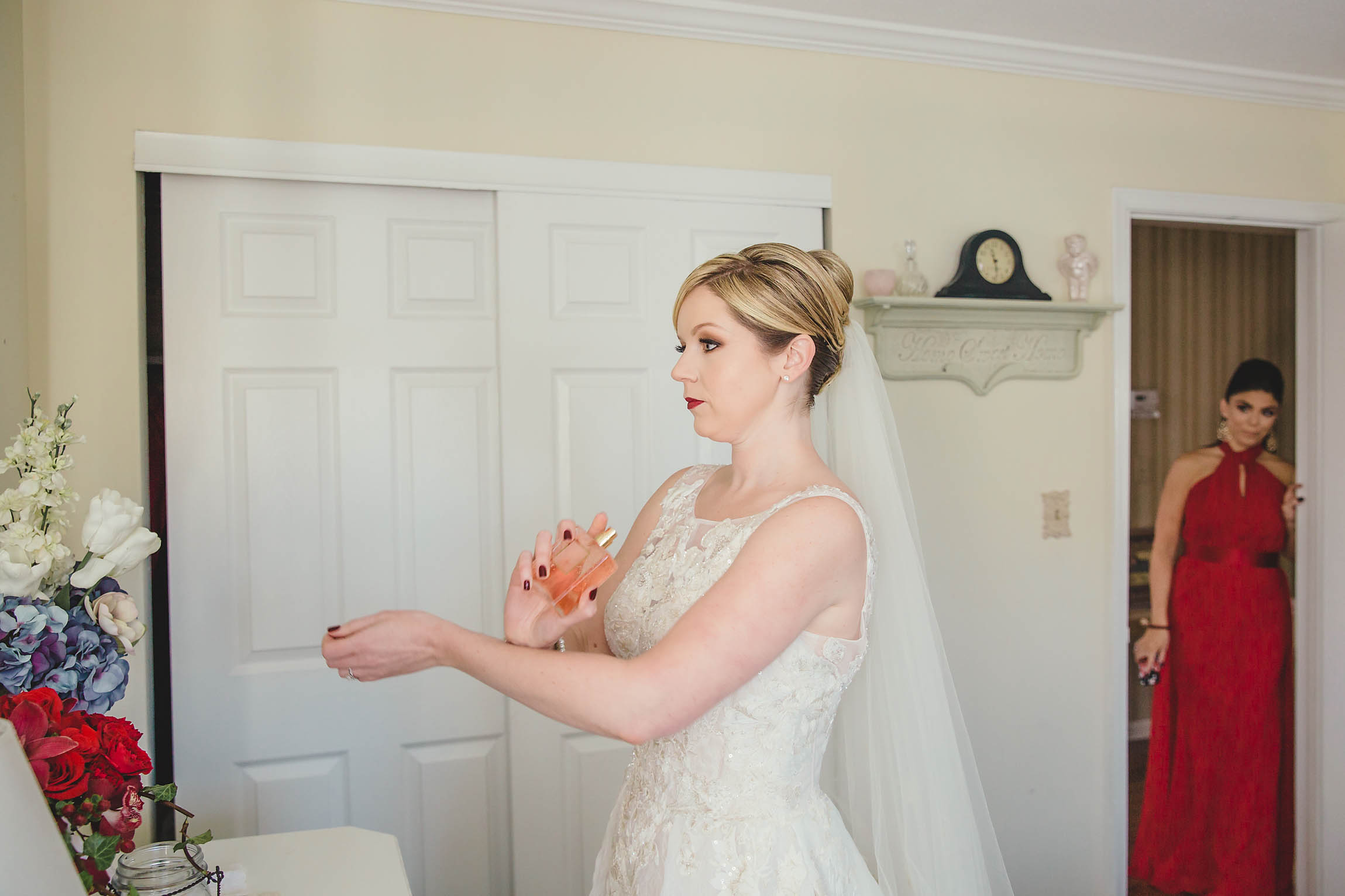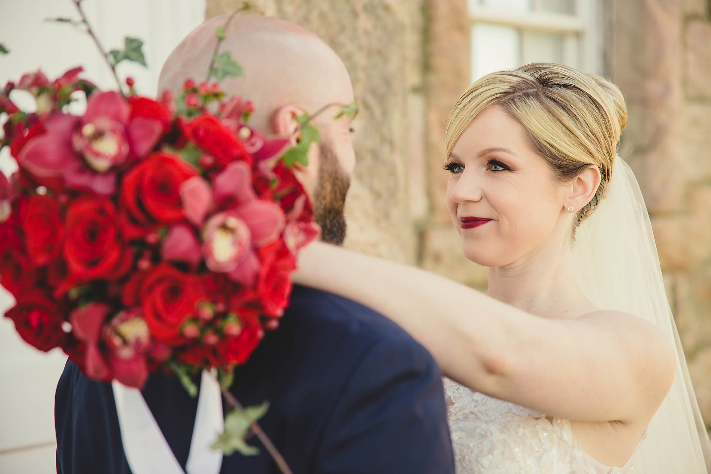 Fast forward to the wedding day. Kira looked absolutely stunning in her Oleg Cassini wedding dress, what can I say, it had pockets!! Kira said it was for “pocket candy” which is exactly what I would have used them for too. Even her shoes were perfect, a simple blue suede ballerina style slipper. Decker’s Nursery, Florist and Tree Preservation (where Mike works) made the bouquets and boutonnieres and they were exquisite.
