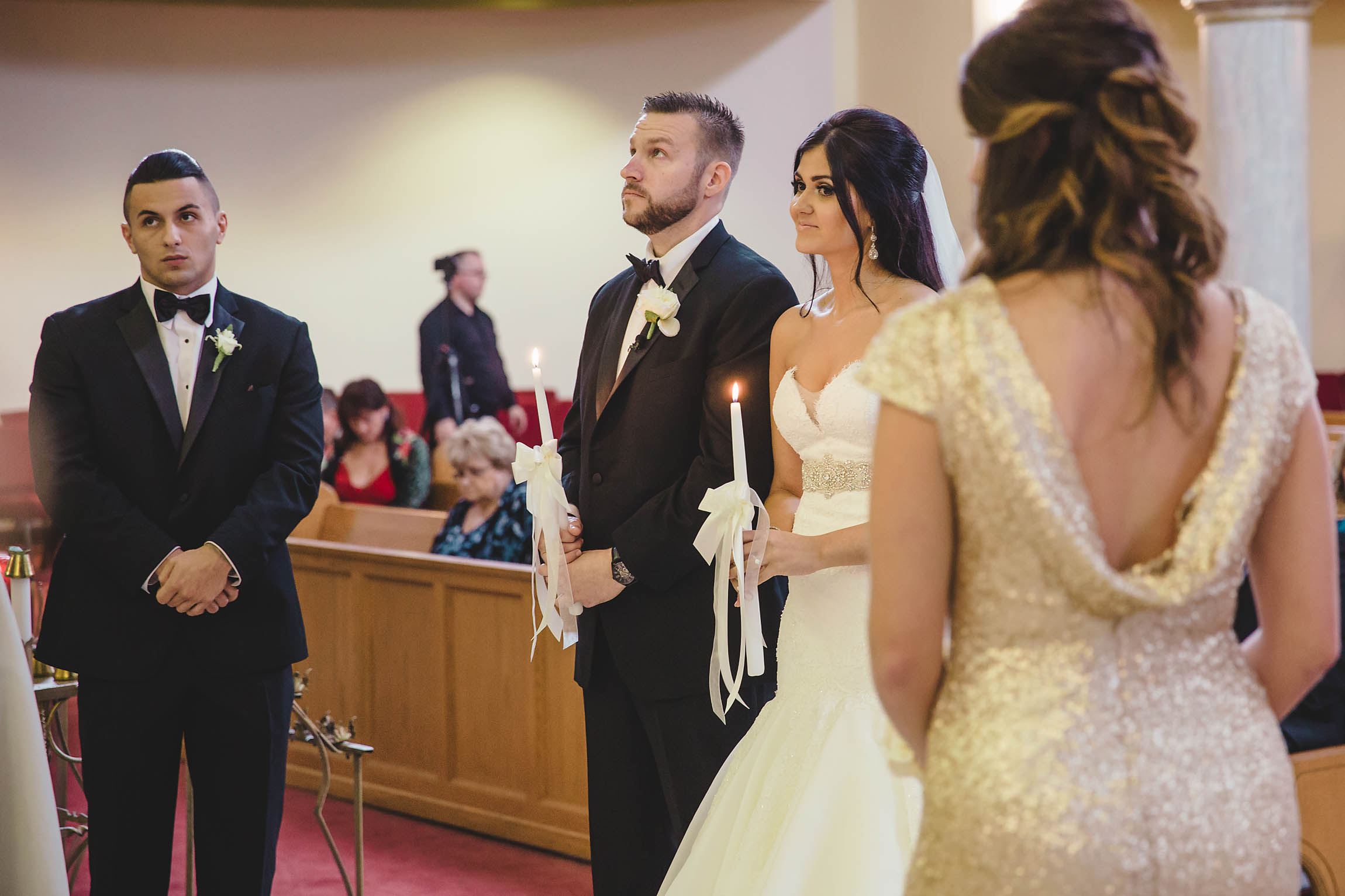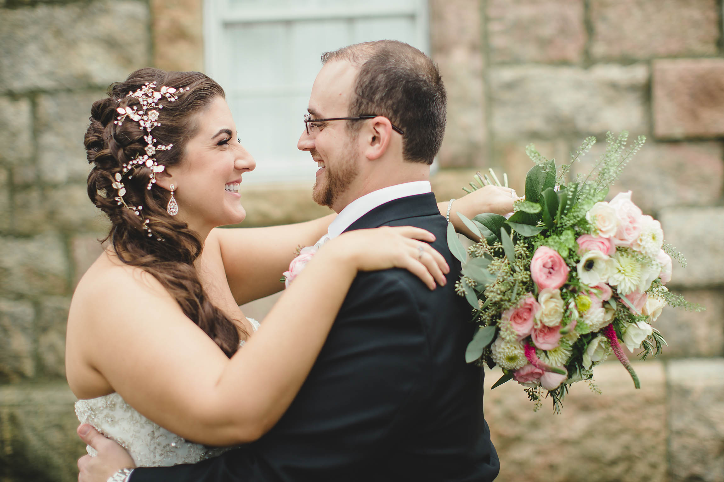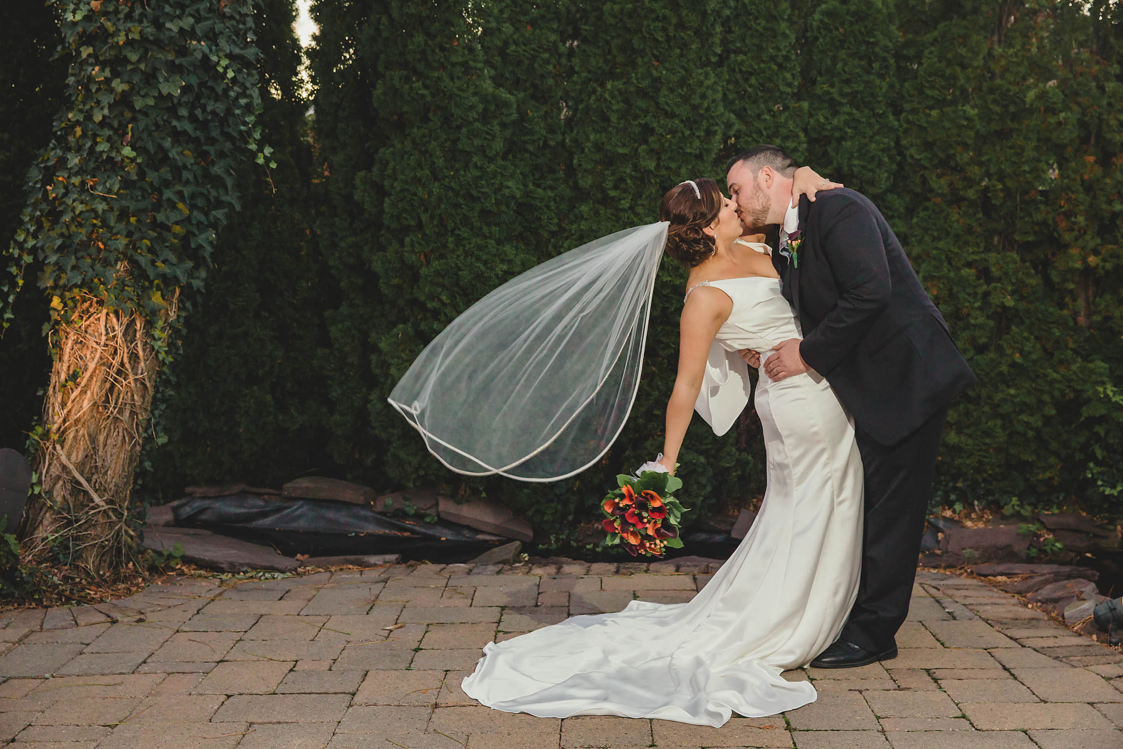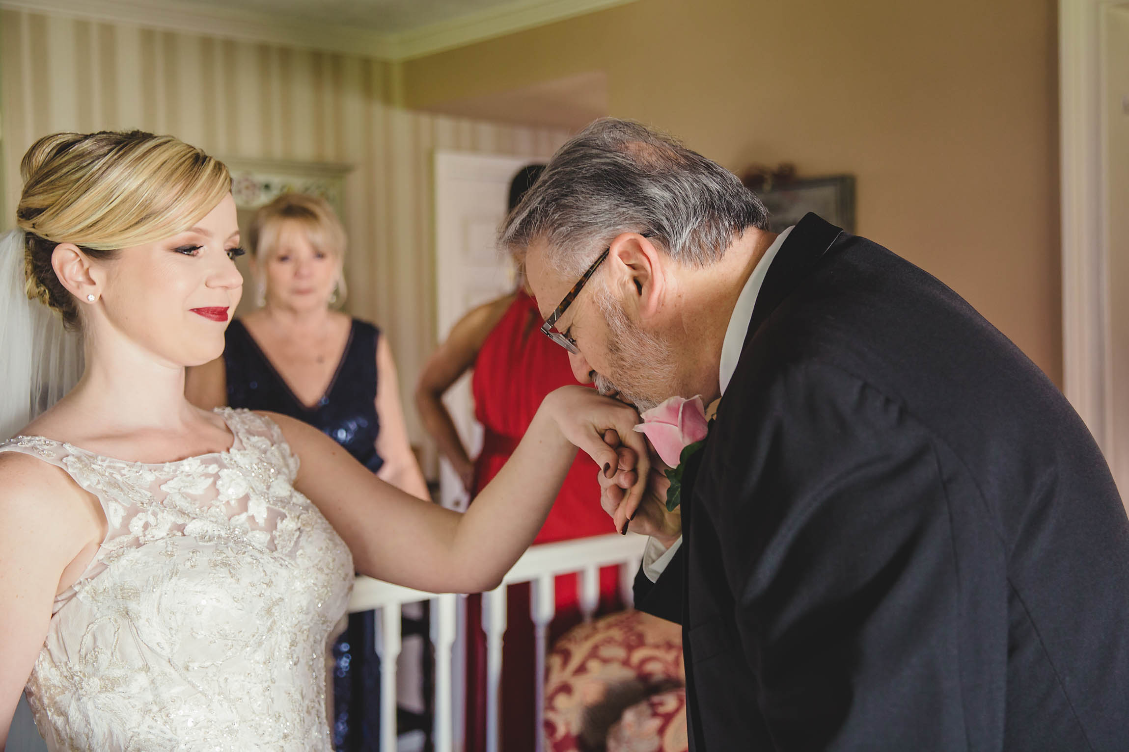 Fast forward to the wedding day. Kira looked absolutely stunning in her Oleg Cassini wedding dress, what can I say, it had pockets!! Kira said it was for “pocket candy” which is exactly what I would have used them for too. Even her shoes were perfect, a simple blue suede ballerina style slipper. Decker’s Nursery, Florist and Tree Preservation (where Mike works) made the bouquets and boutonnieres and they were exquisite.