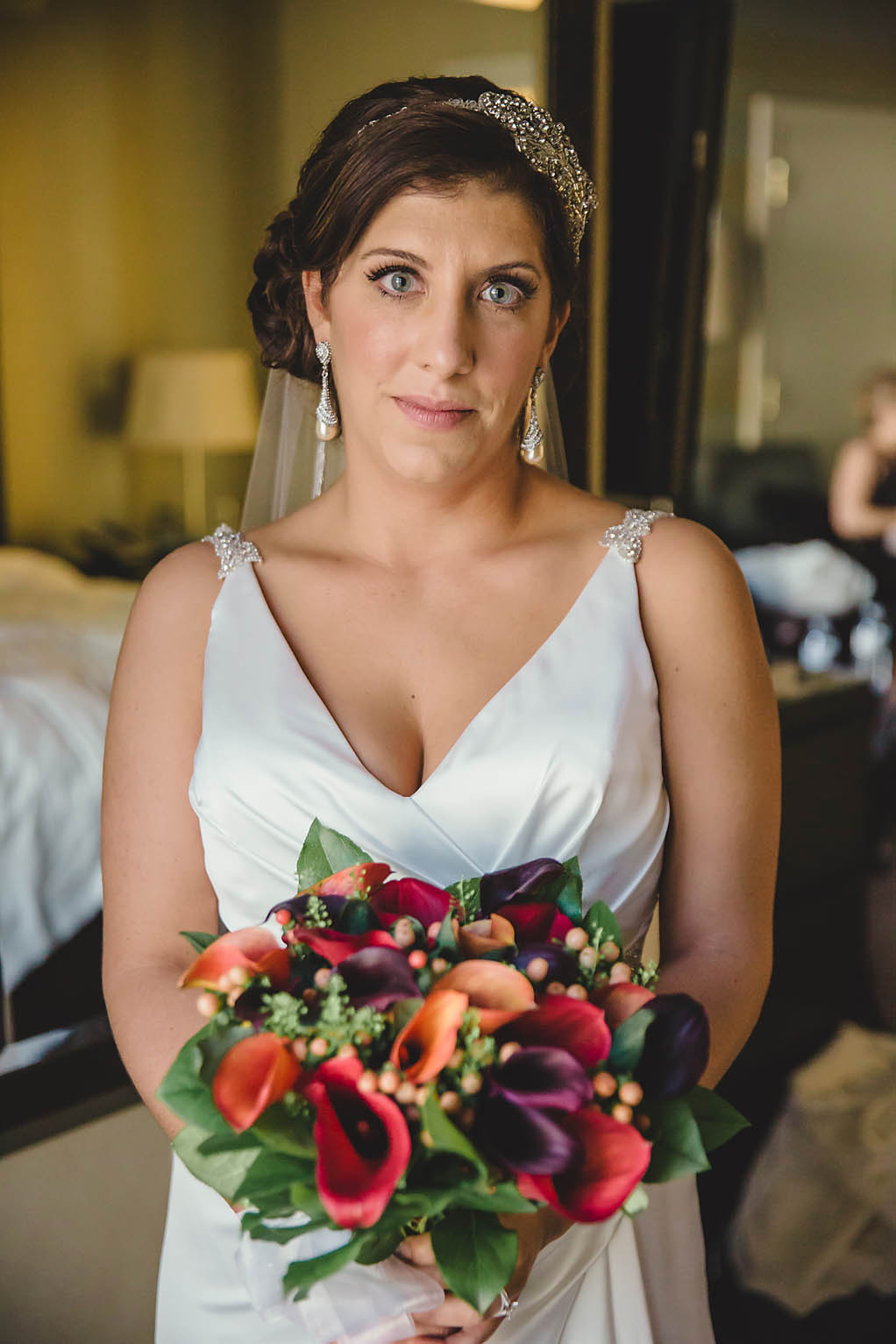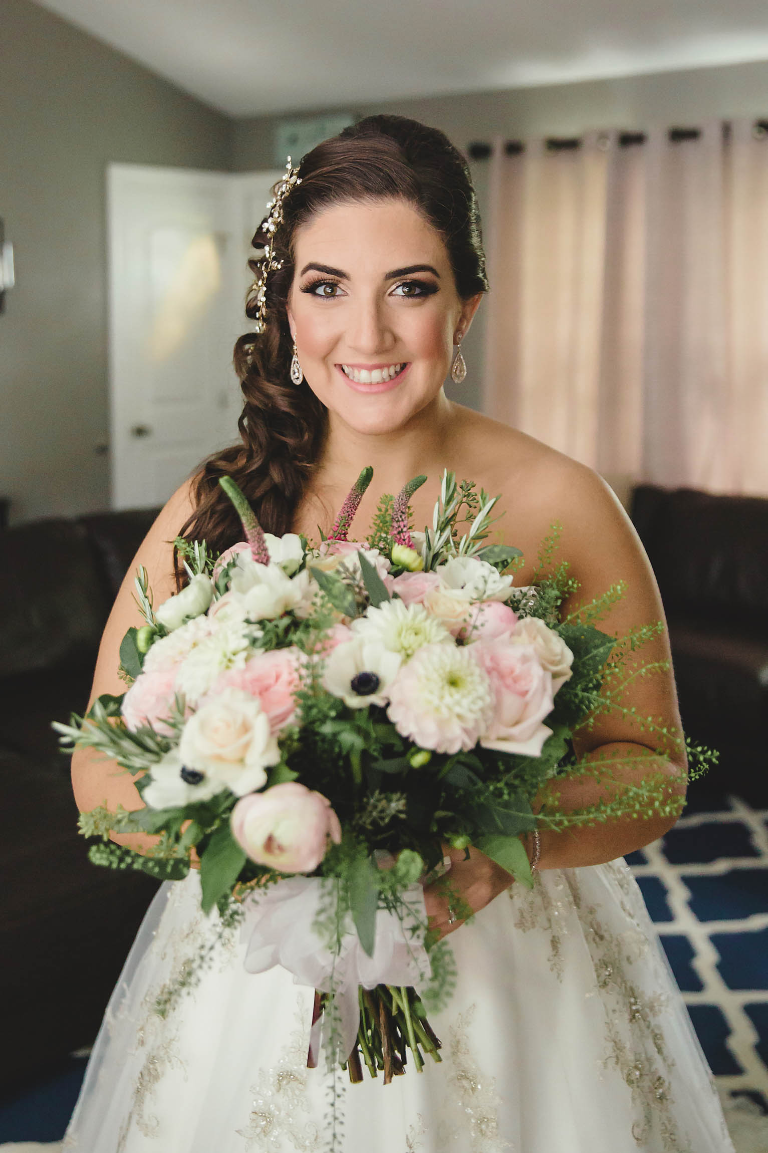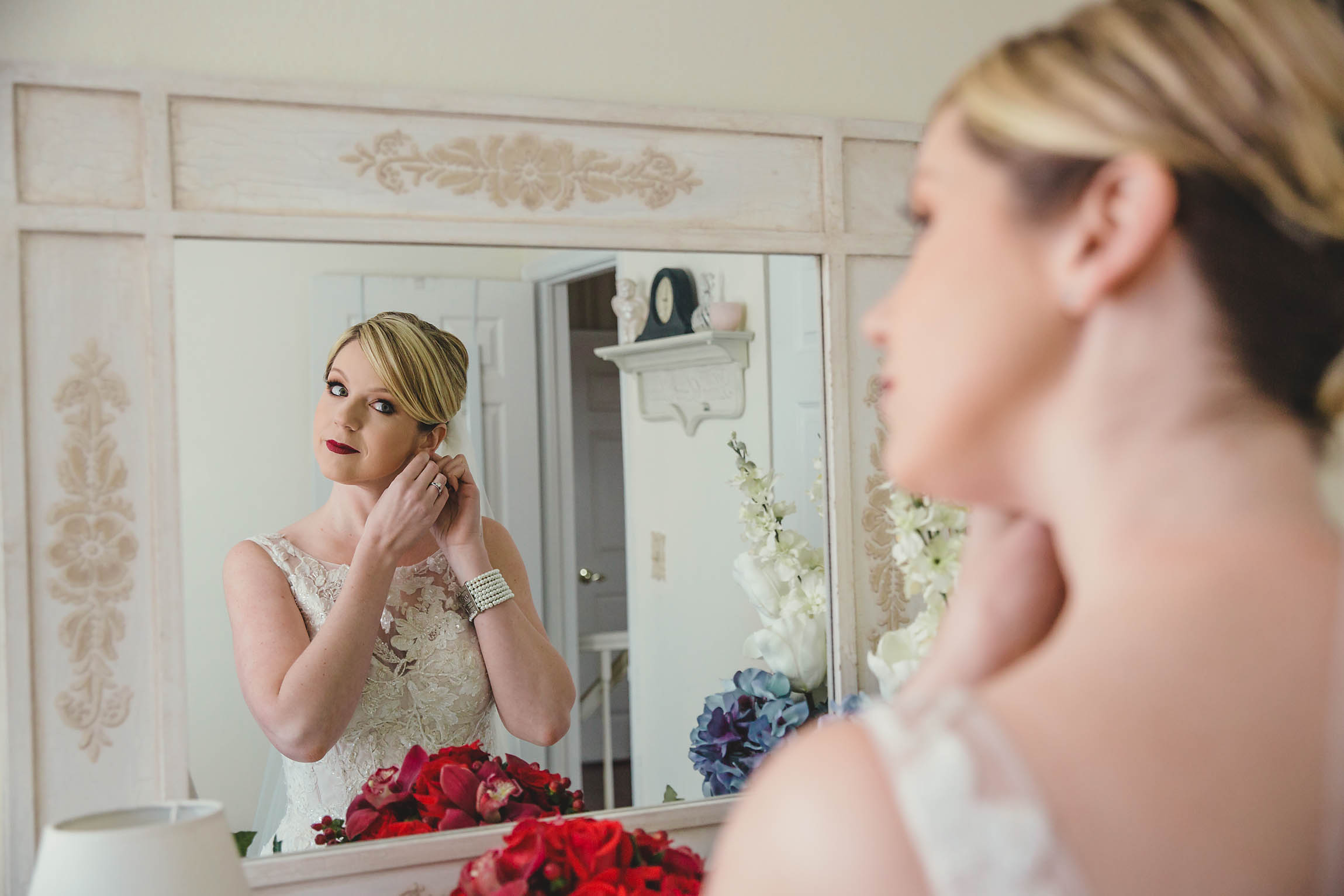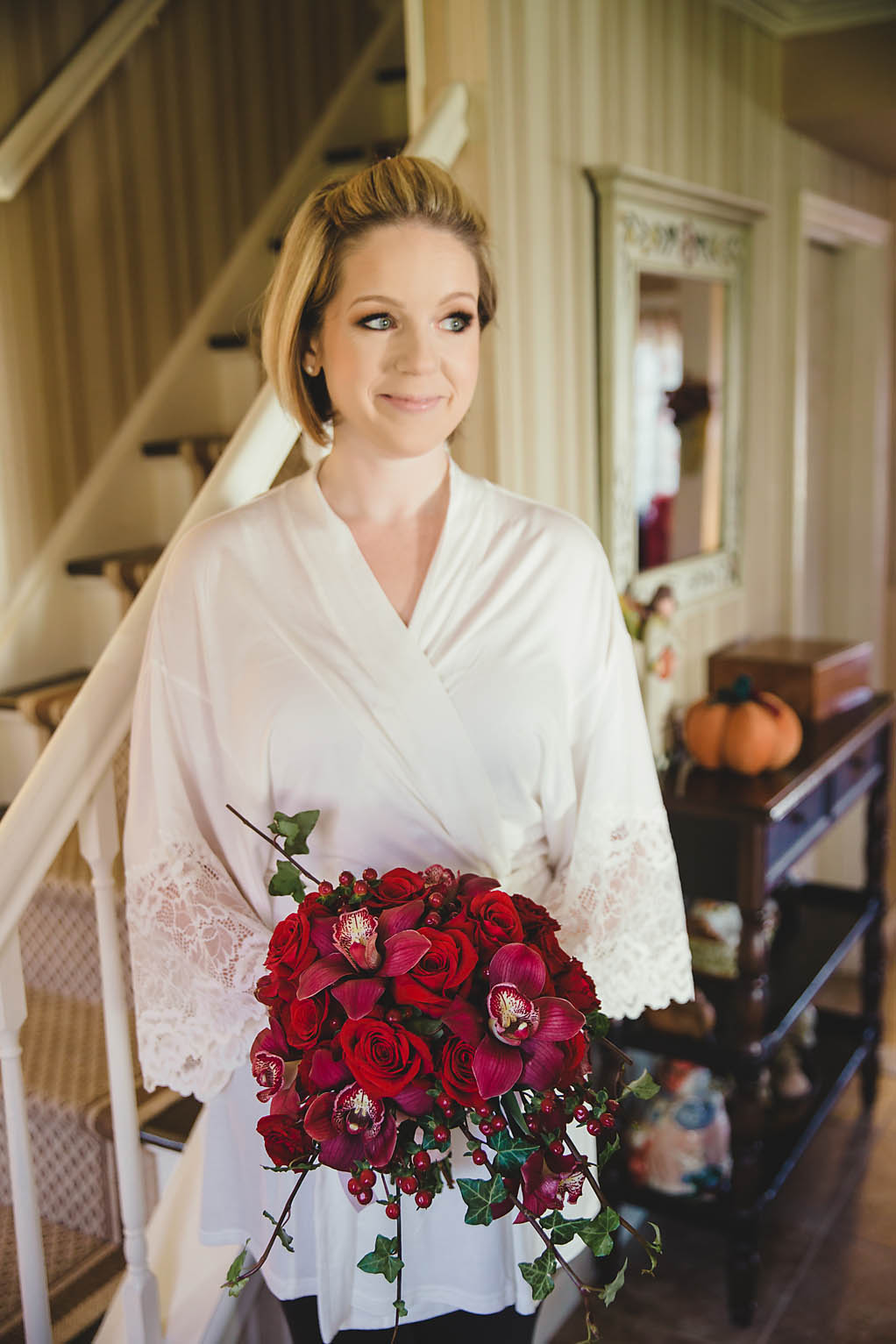 Fast forward to the wedding day. Kira looked absolutely stunning in her Oleg Cassini wedding dress, what can I say, it had pockets!! Kira said it was for “pocket candy” which is exactly what I would have used them for too. Even her shoes were perfect, a simple blue suede ballerina style slipper. Decker’s Nursery, Florist and Tree Preservation (where Mike works) made the bouquets and boutonnieres and they were exquisite.
